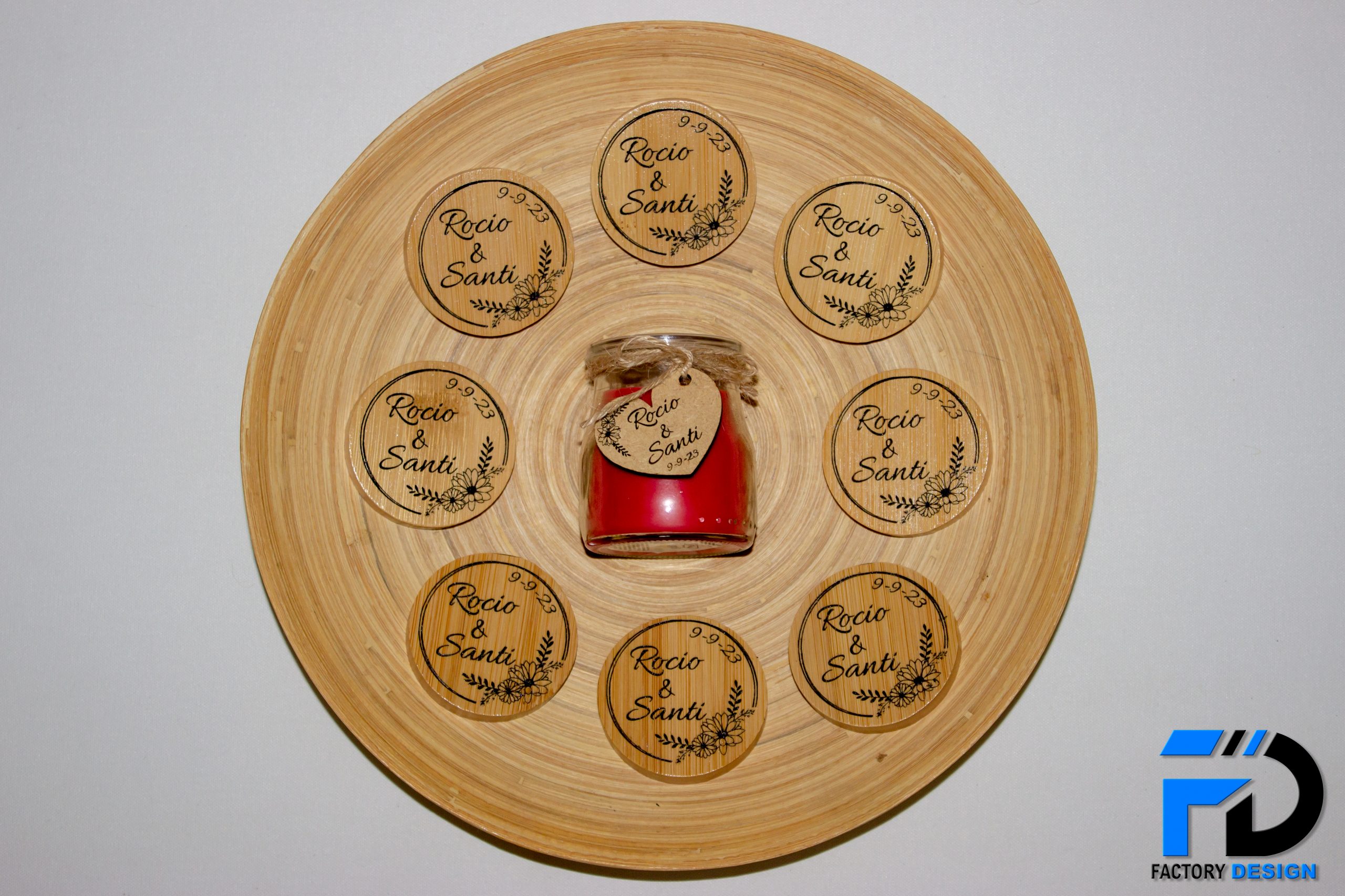 El grabado láser con los nombres y la fecha está incluido en el precio.