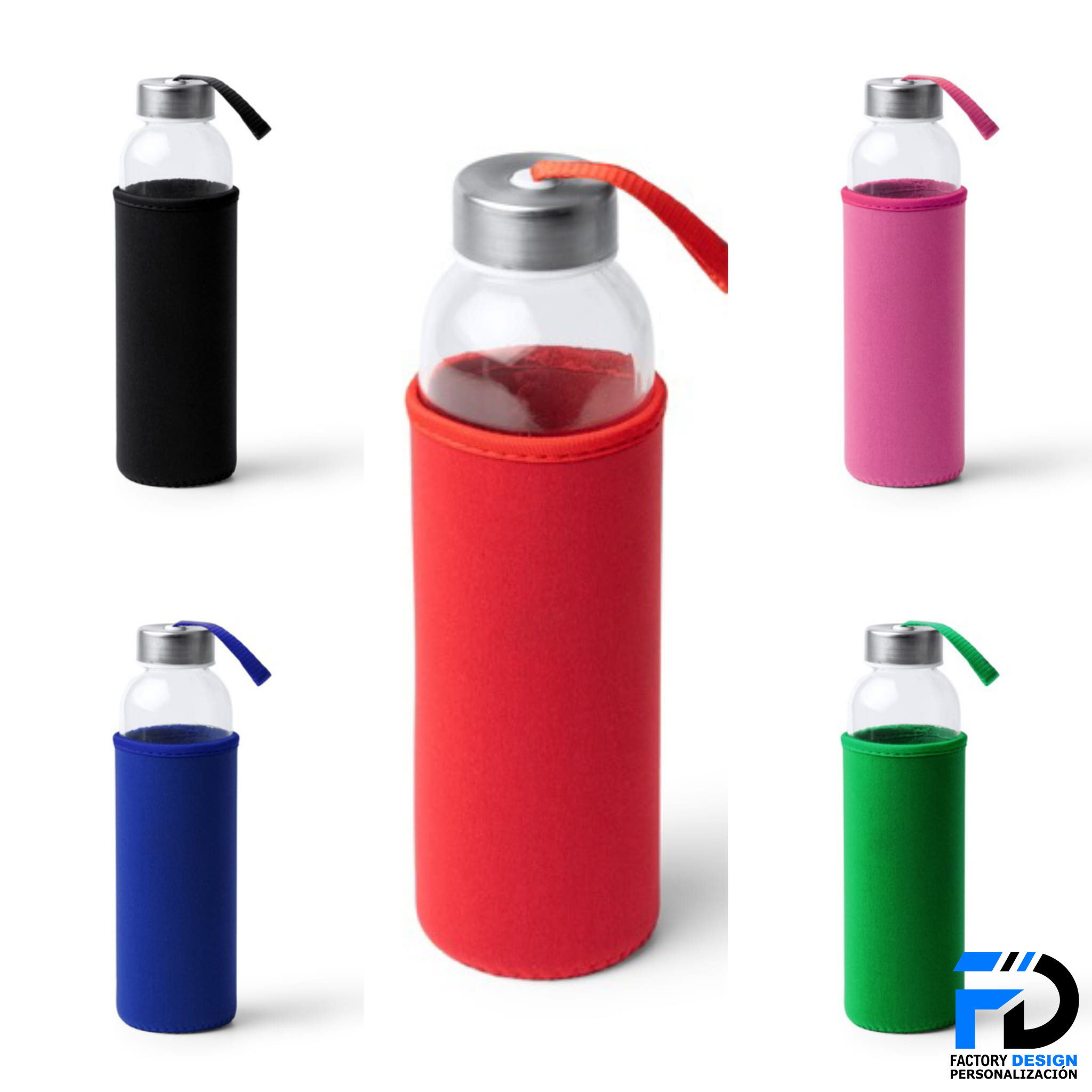 - Material: botella de cristal, funda de neopreno y tapón de acero