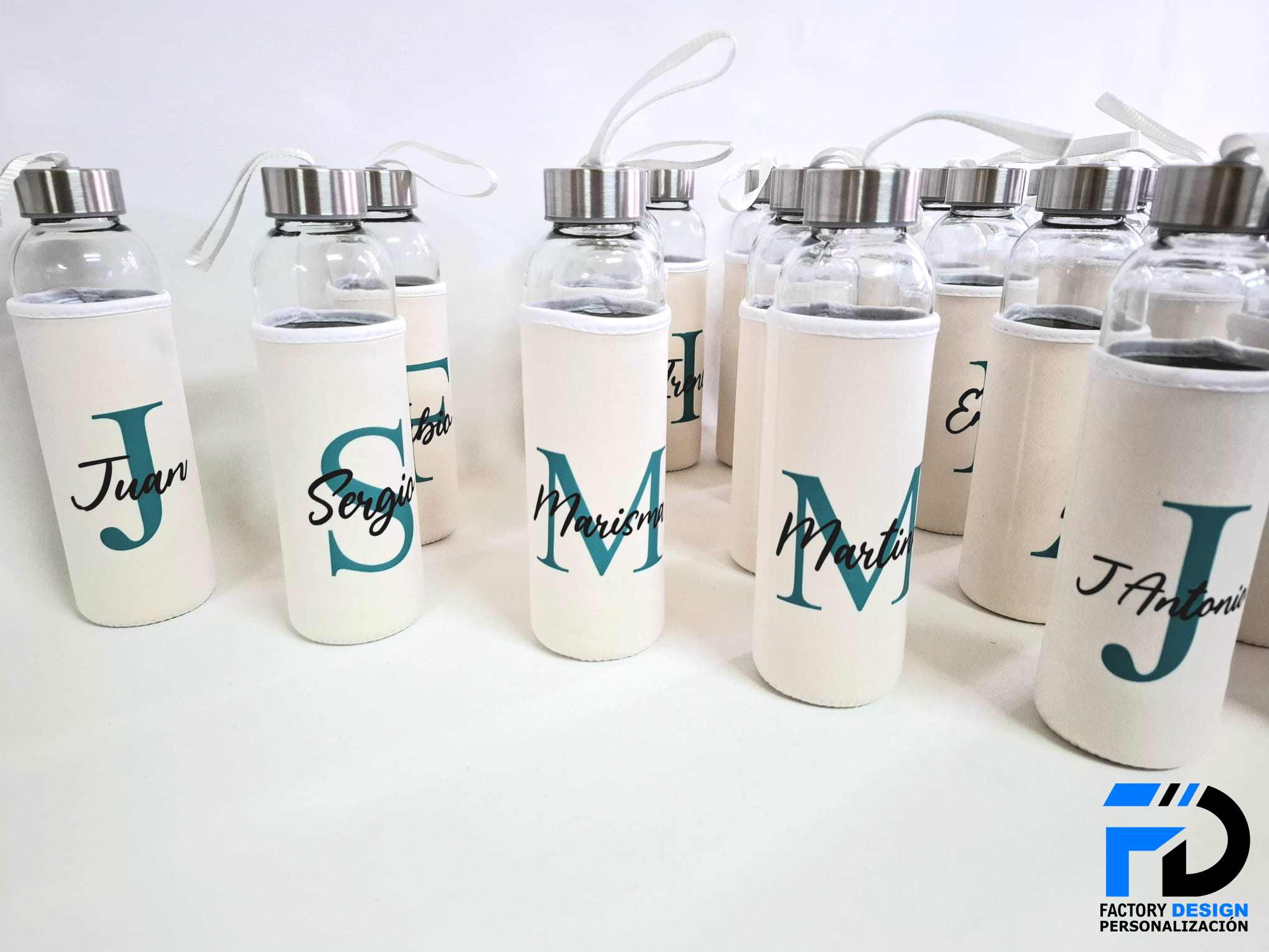 Botella de cristal personalizada, tapón de acero.