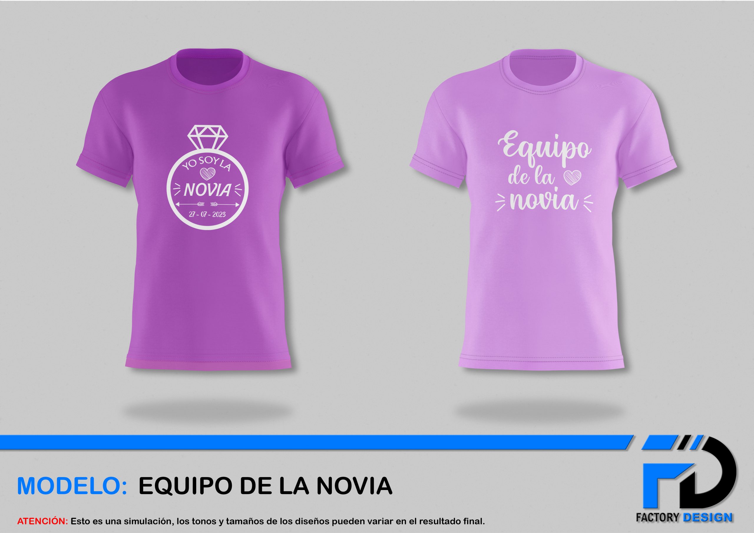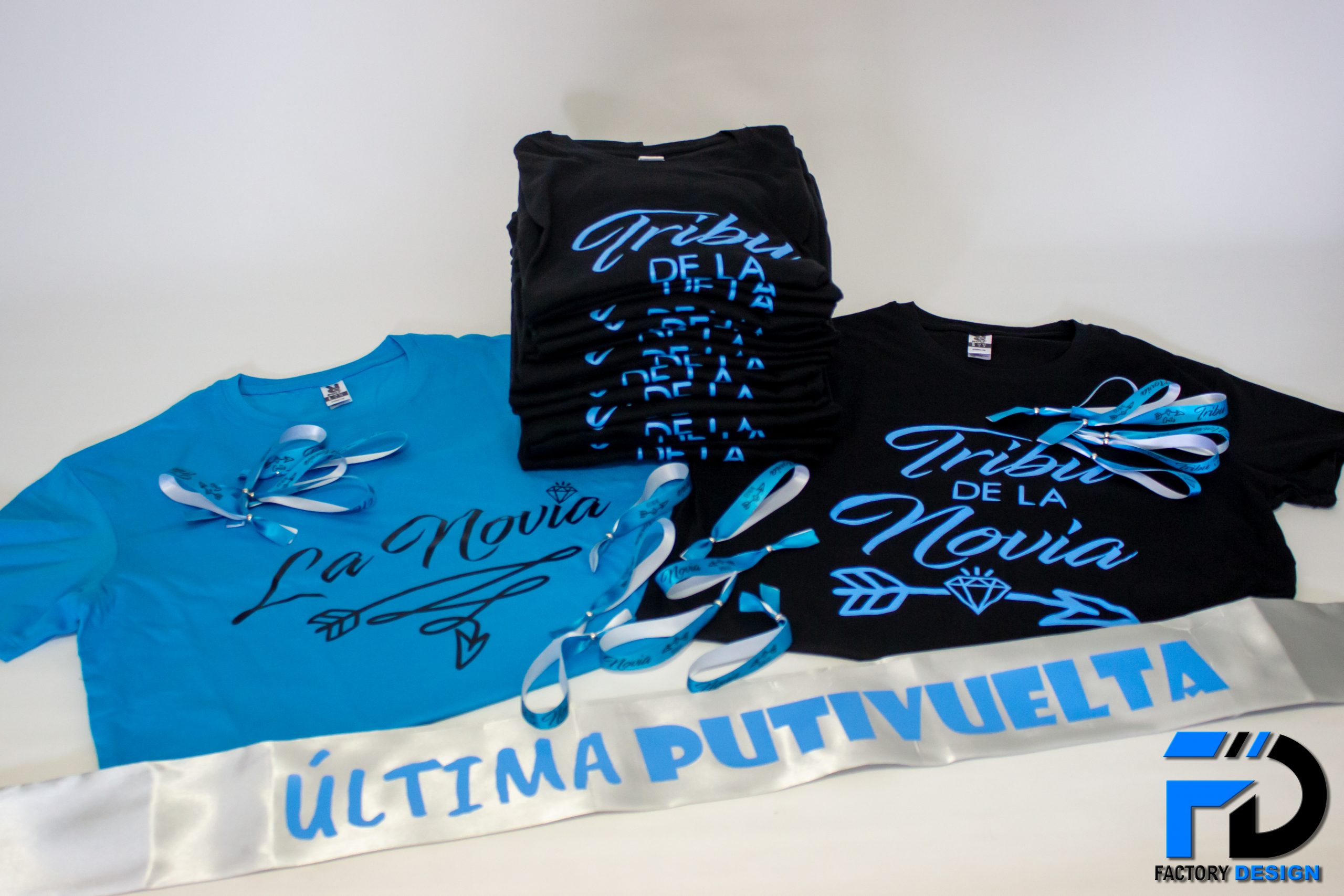 Cada pack incluye 1 camiseta para la novia y la banda de regalo, puedes elegir el número de camisetas que quieras para el equipo de la novia.