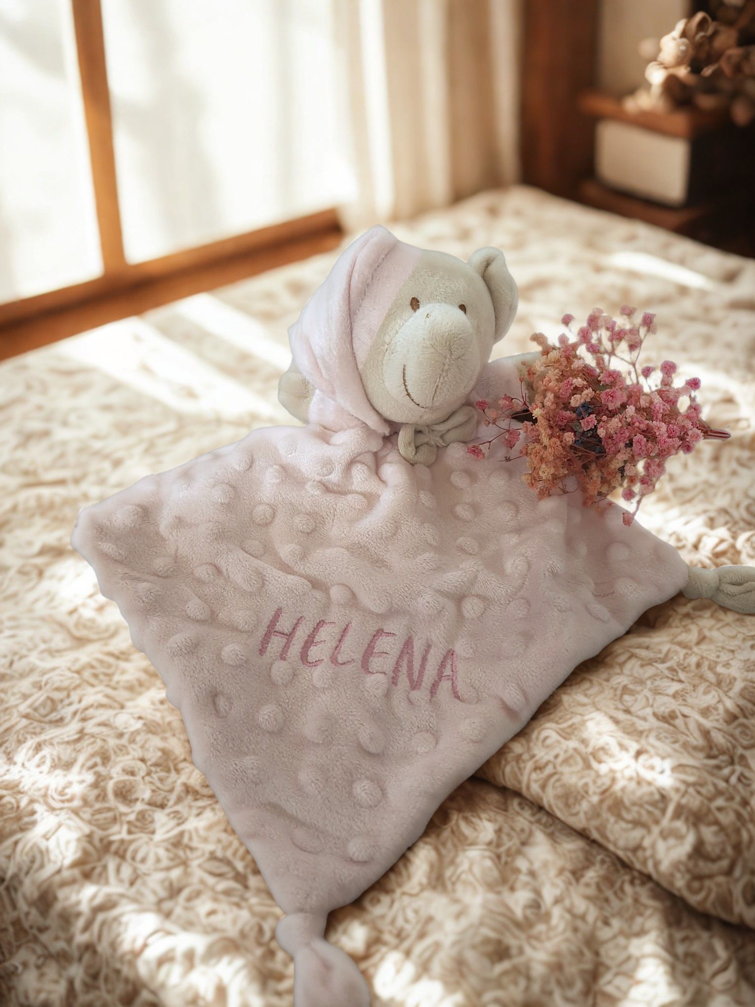 DouDou personalizado de tejido suave, disponibles en los colores: blanco, azul, rosa bebé, rosa maquillaje.