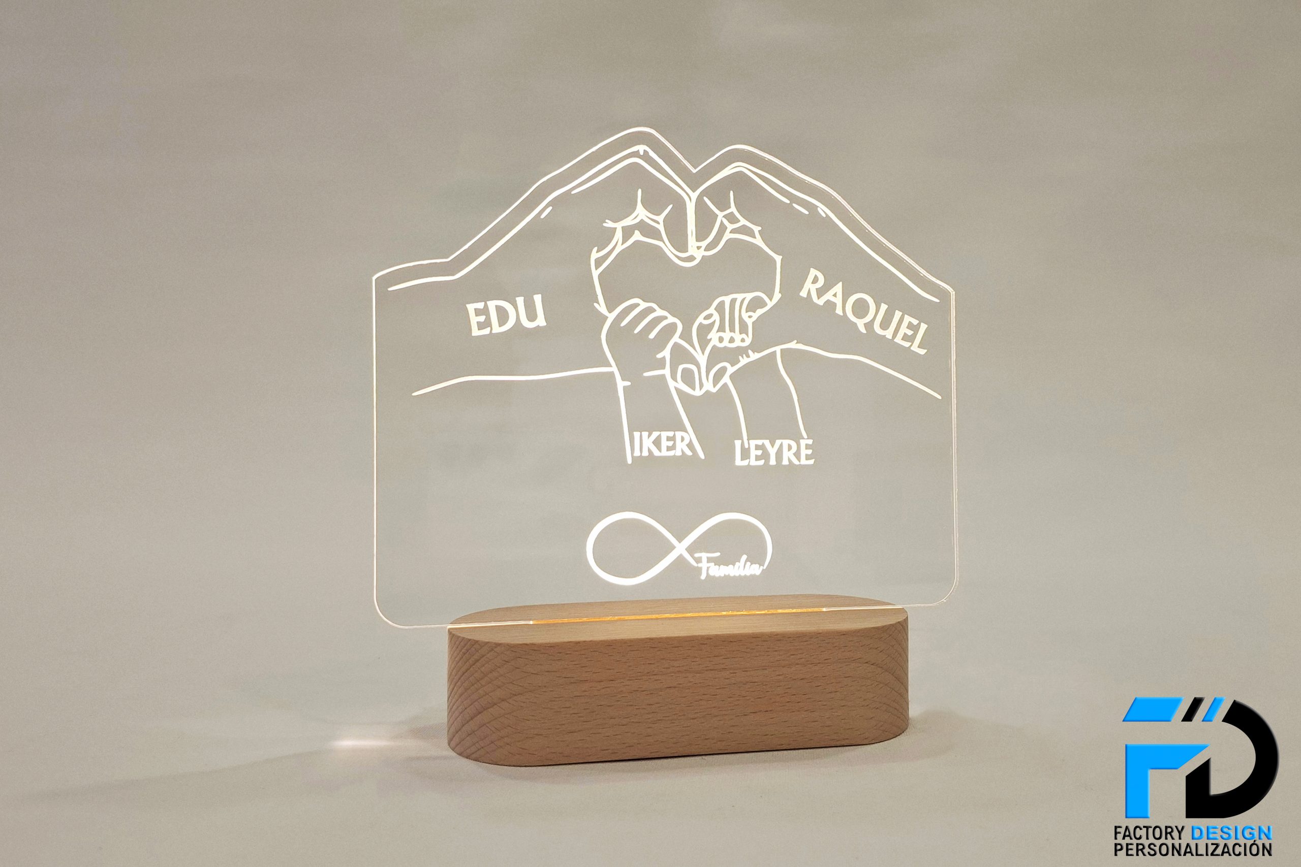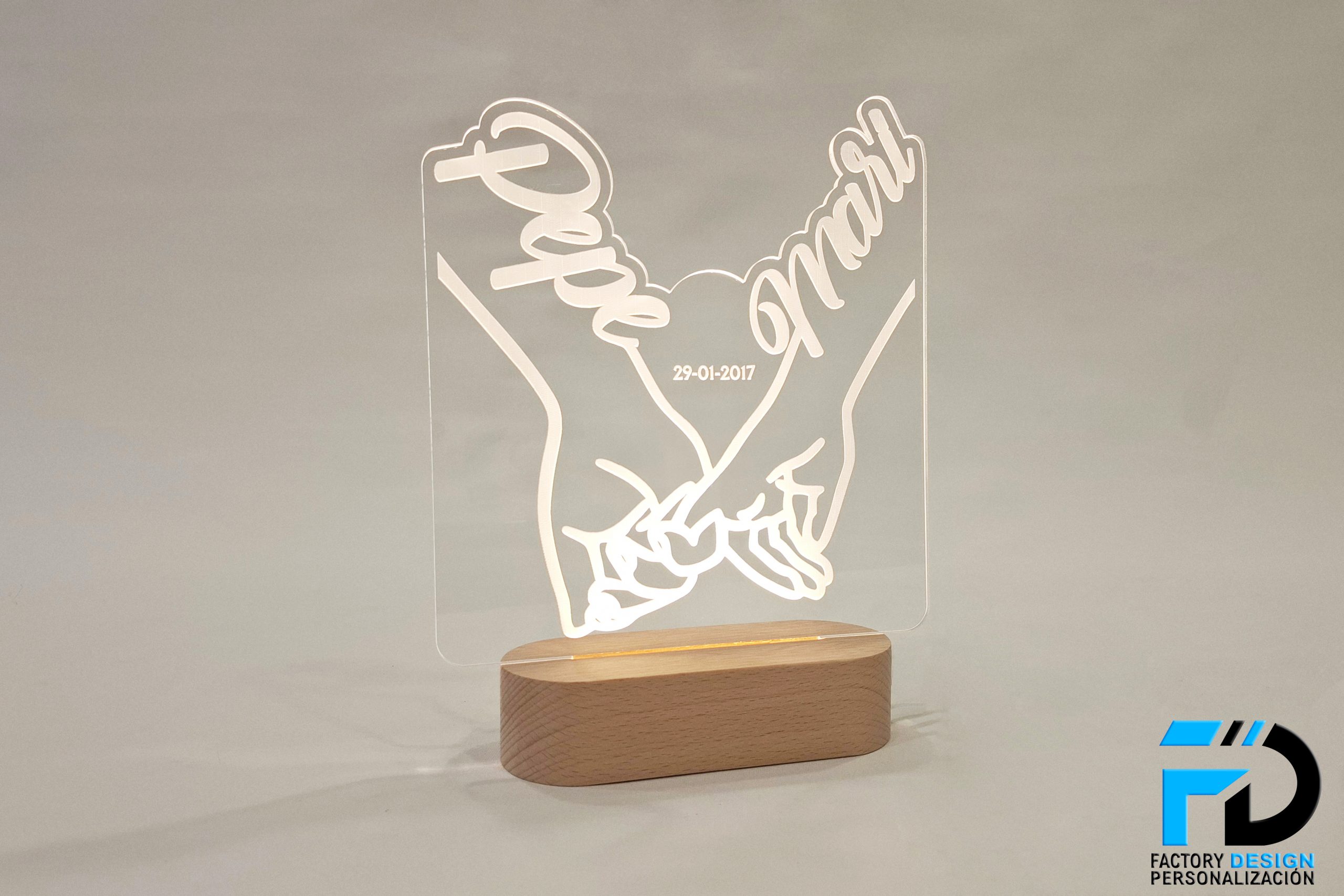 Esta lámpara será un adorno muy especial, que podrá colocar en su mesita de noche. Tiene un estampado muy bonito de dos manos entrelazadas. Pero lo mejor es que es personalizable, podrás escribir el nombre que mas desees. ¡Será el detalle más especial!