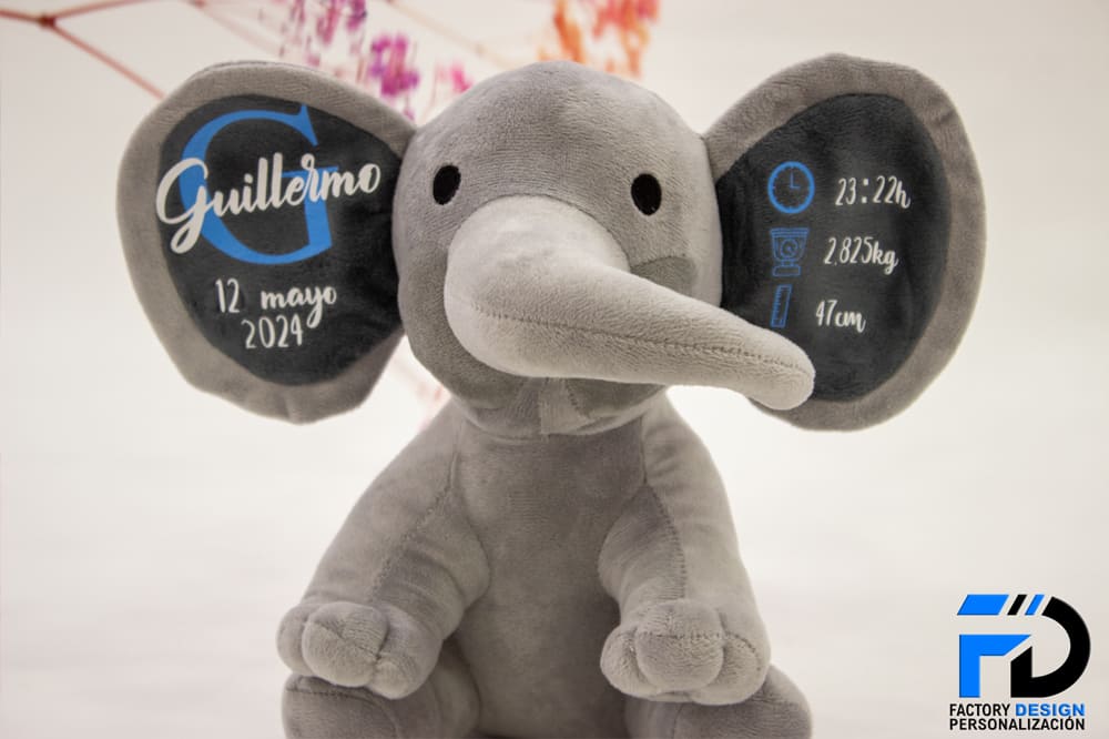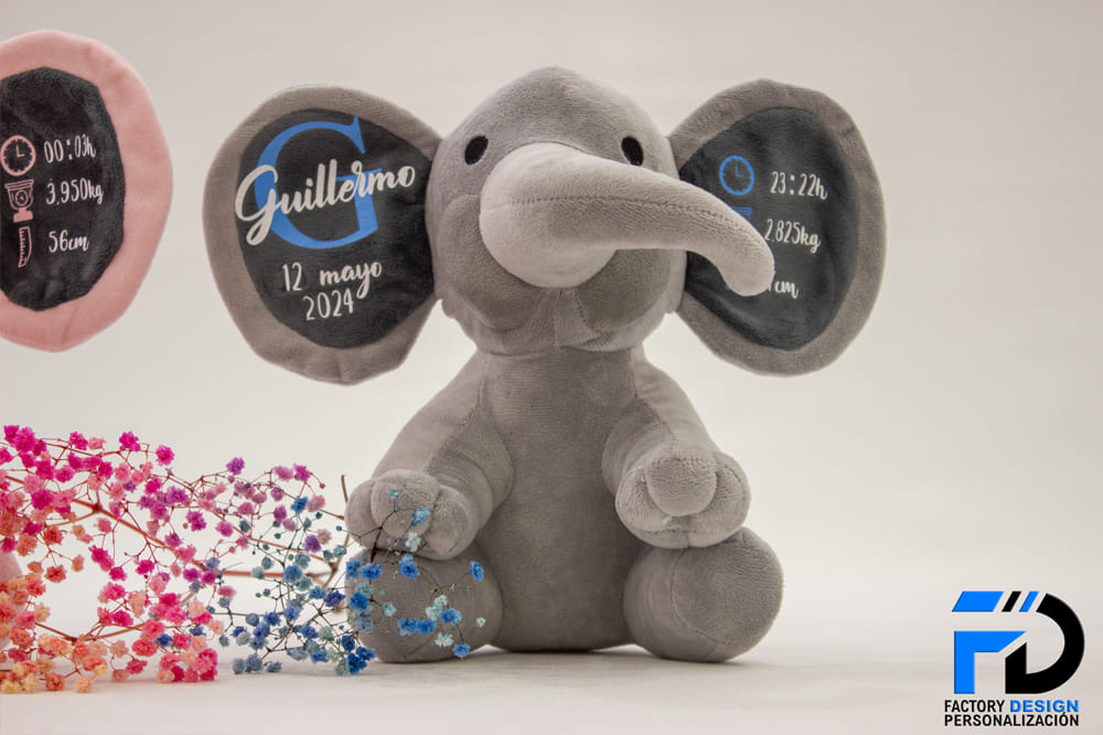 Esta dulzura de Elefante con el nombre y datos de nacimiento.