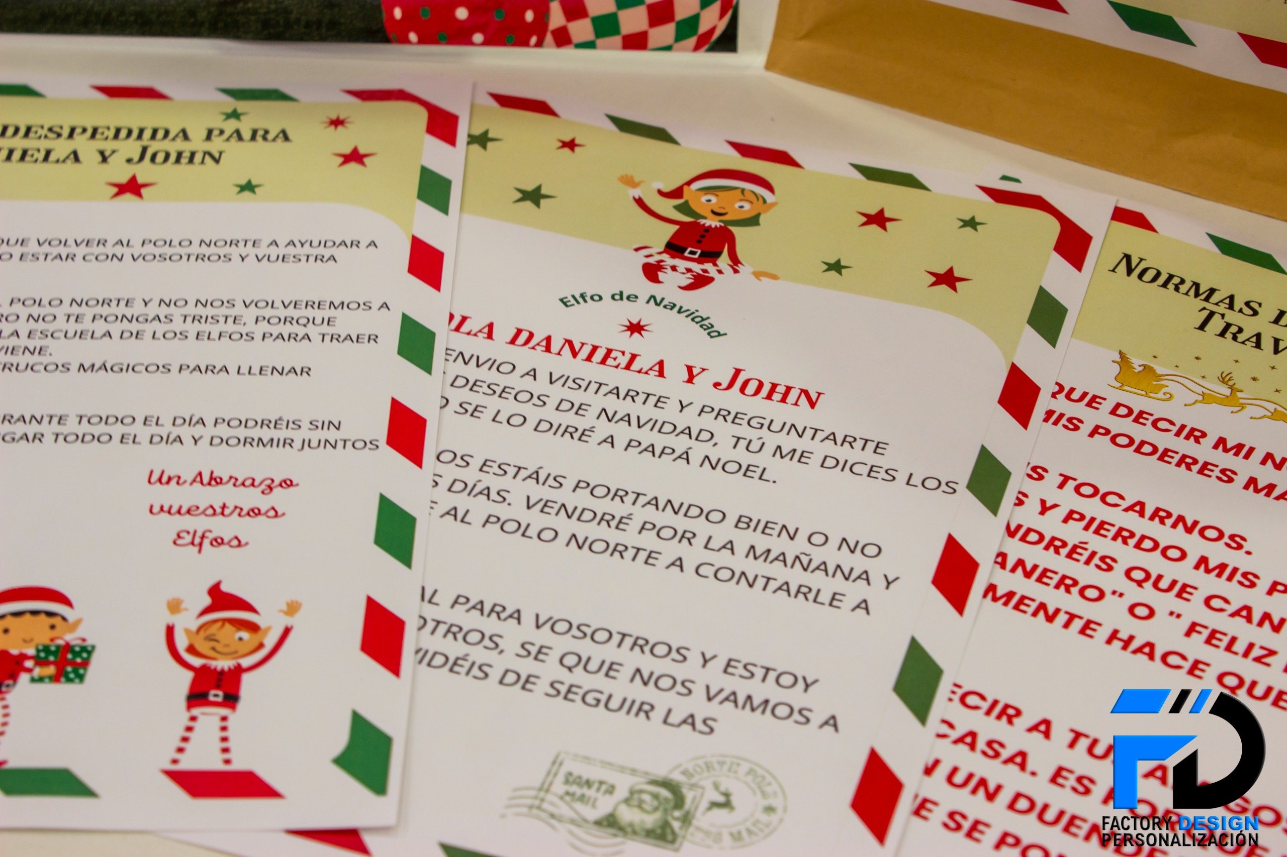 - 1 carta anunciando la llegada del elfo y 1 carta de despedida con nombre de los niños