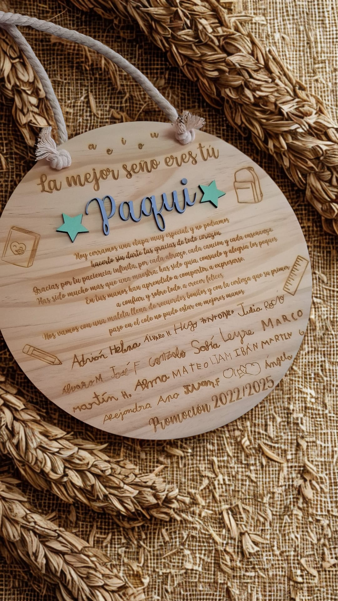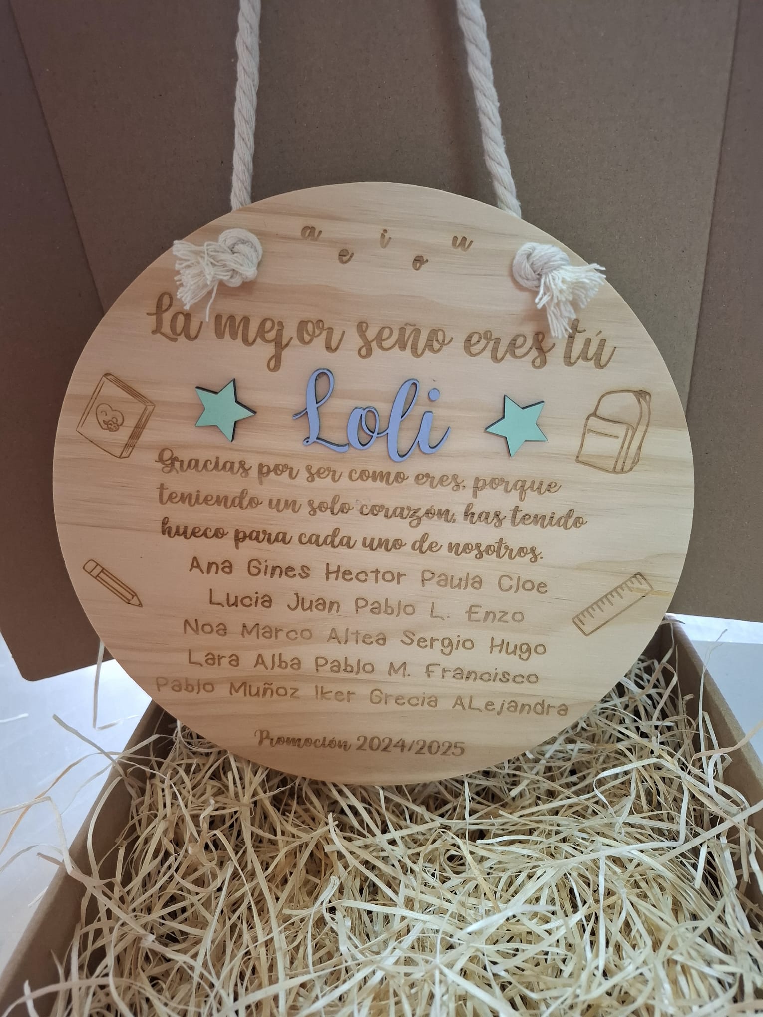 ✨ Hecha con madera de alta calidad, personalizada con nombre y mensaje especial, es ideal para fin de curso, jubilaciones o simplemente para decir: ¡Gracias, profe!