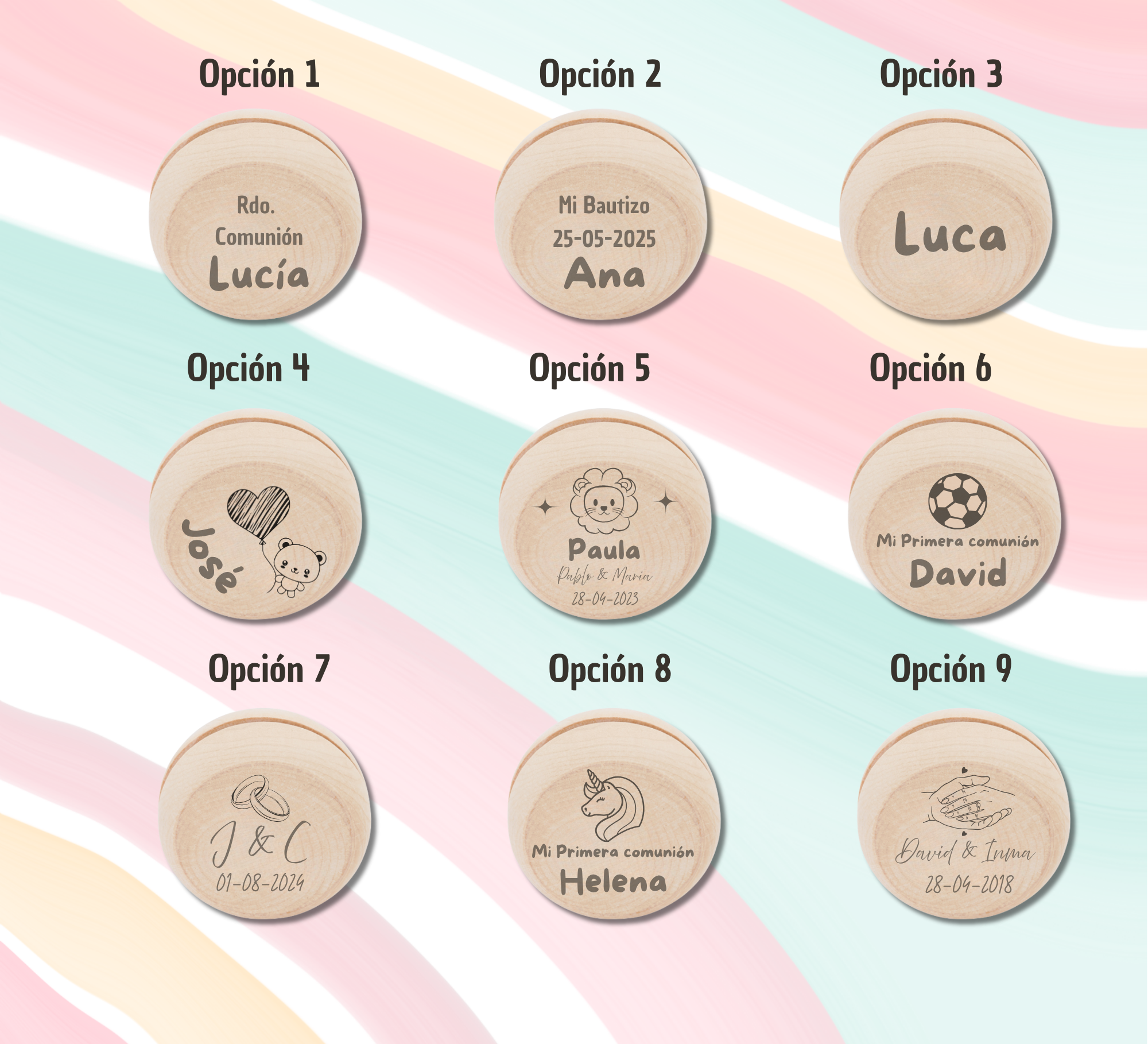 Yoyó de madera para que los pequeños se diviertan, perfecto para fiestas infantiles, o incluso para regalar a los más peques de tu boda también puedes colocarlo como marcasitios y alucinarán al ver su nuevo yoyo personalizado con su nombre.